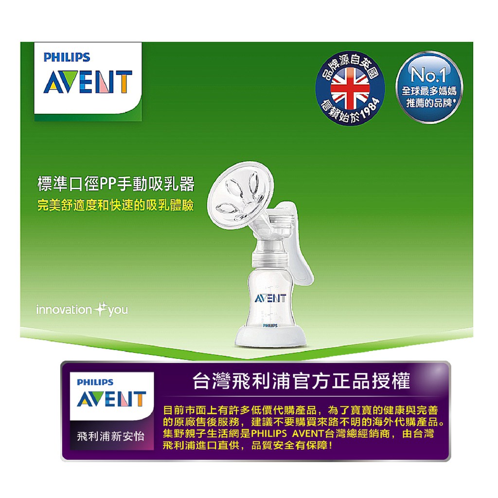 下殺、下殺、下殺↘349元,加贈安撫奶嘴一個 AVENT 新安怡PP材質標準口徑手動吸乳器,讓媽咪輕鬆吸取更多的乳汁