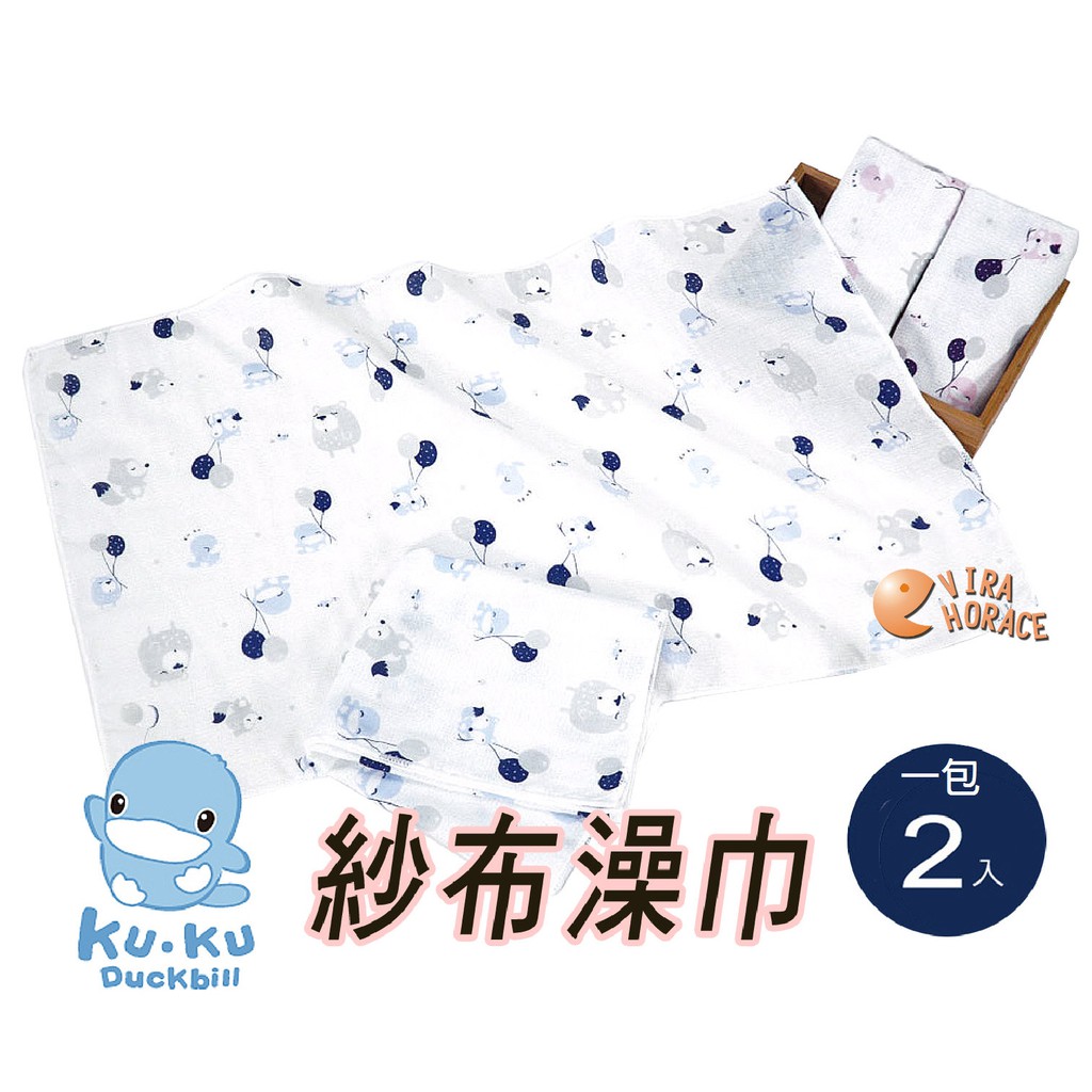 KU.KU 酷咕鴨 KU2392 夢想氣球紗布澡巾2入,不含甲醛、螢光劑、無異味 HORACE