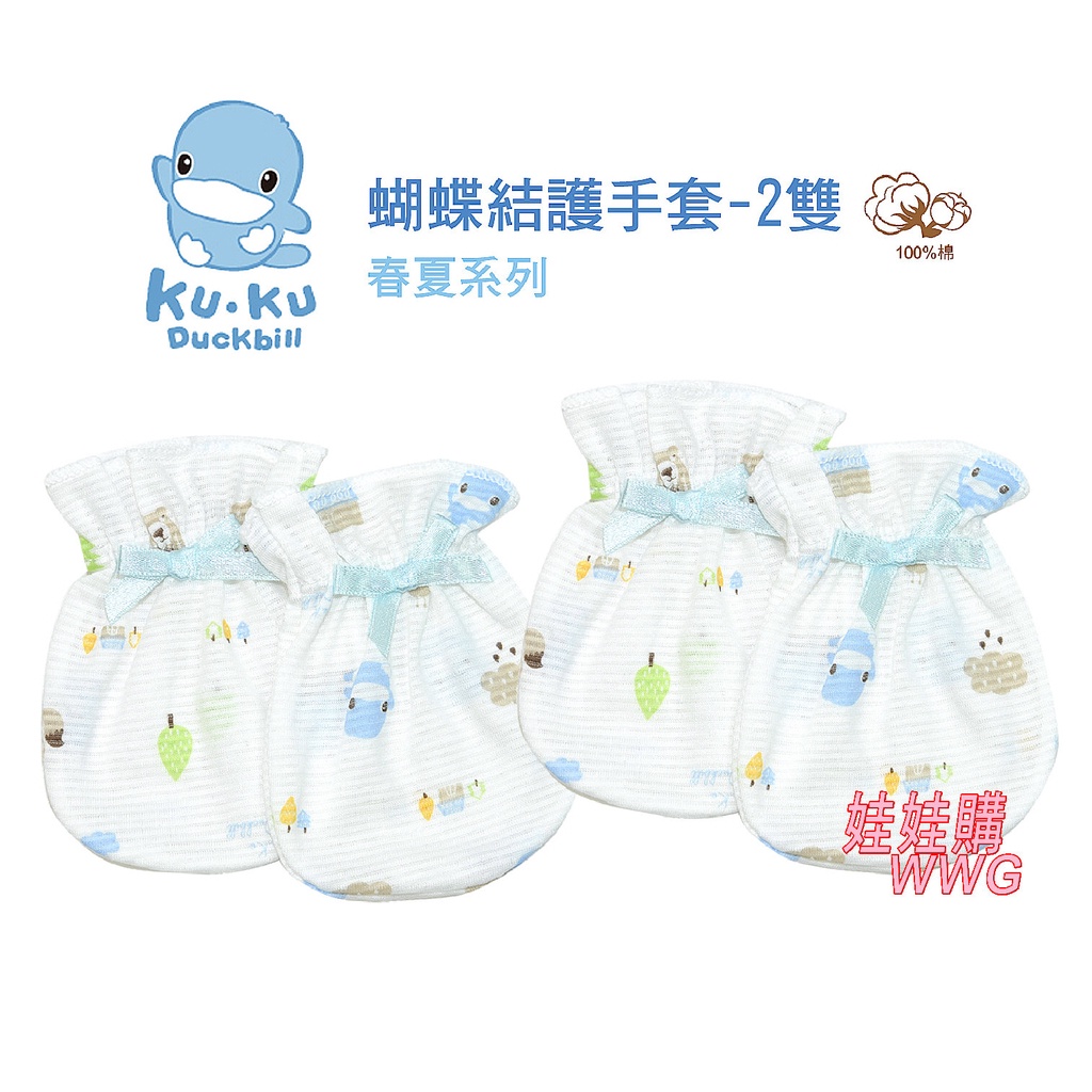 KU.KU 酷咕鴨蝴蝶結護手套 2雙入,彈性束口穿戴方便,質感柔細舒適,讓寶寶保暖又安全Ku-2306