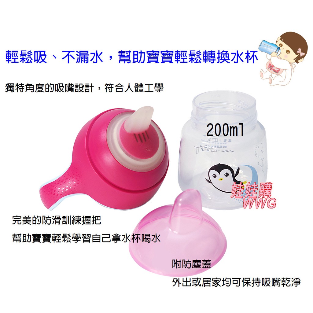 AVENT 企鵝鴨嘴吸口水杯200ML 六個月以上寶寶使適用 輕鬆吸、不漏水、幫助寶寶輕鬆轉換水杯,本檔加贈吸嘴送完為止