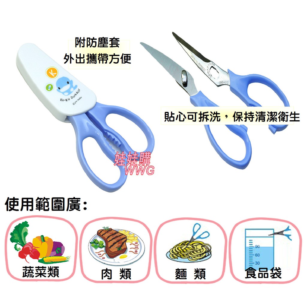 KU.KU 酷咕鴨可拆式隨身食物剪附保護蓋3031(攜帶式食物剪刀)不鏽鋼材質刀柄可拆洗設計,保持清潔衛生