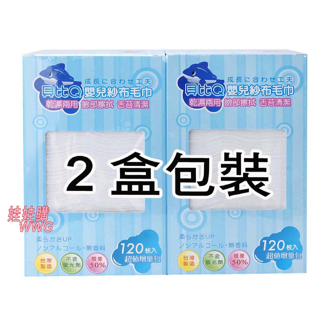 貝比Q 嬰兒紗布毛巾乾濕兩用巾 120抽(2盒裝168元)擦拭效果佳, 保護幼嫩肌膚 娃娃購 婦嬰用品專賣店