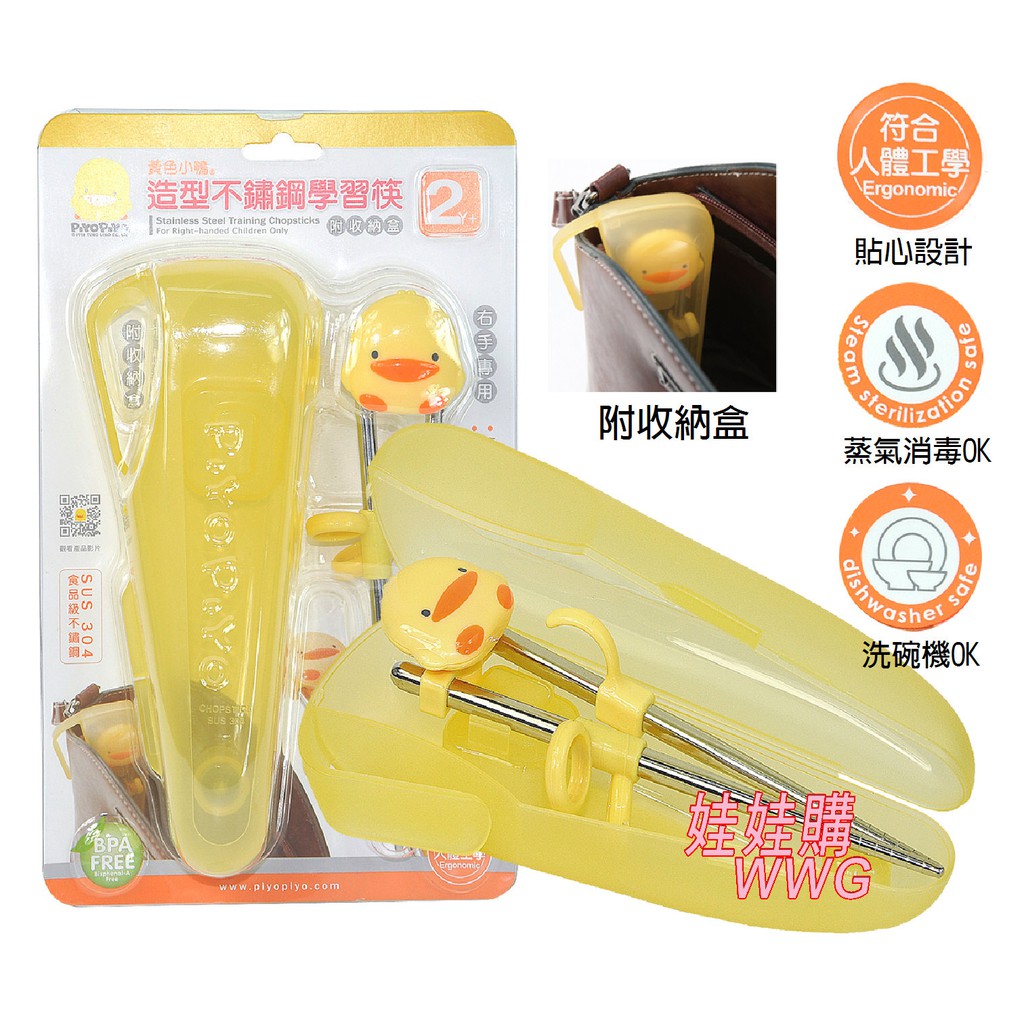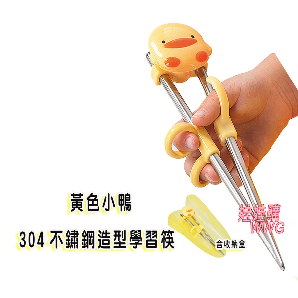 黃色小鴨造型不鏽鋼學習筷附收納盒GT-63123(304不鏽鋼學習筷)右手專用/USU304/食品級不鏽鋼