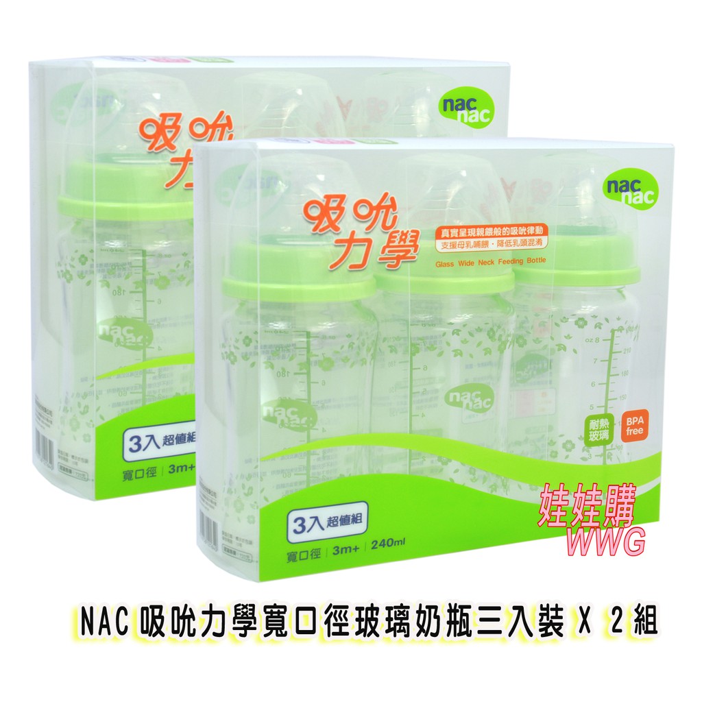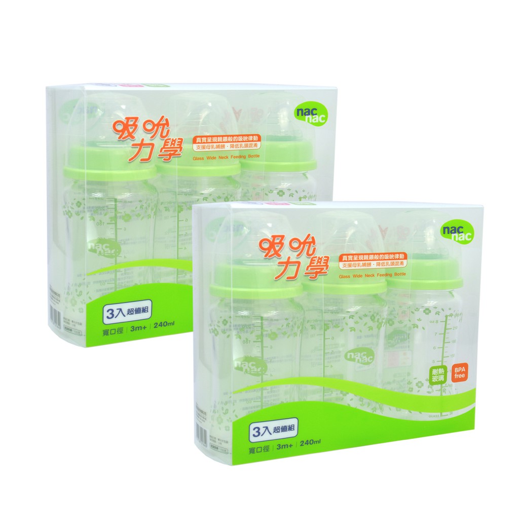 Nac Nac 吸吮力學 寬口徑 玻璃奶瓶三入裝2組 娃娃購 婦嬰用品專賣店