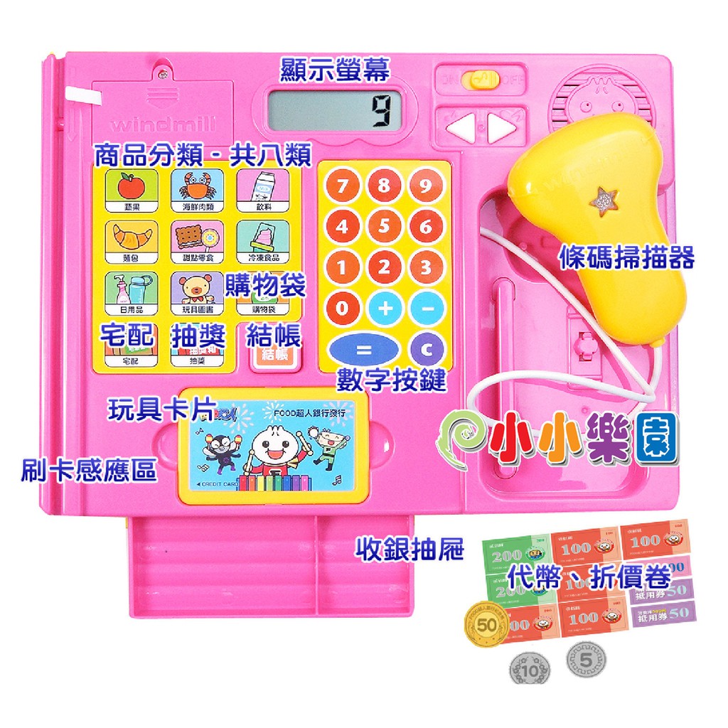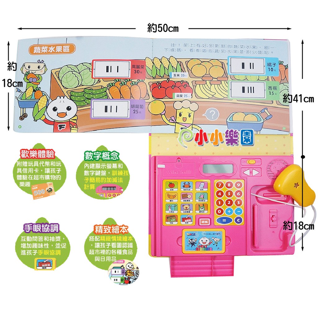風車圖書FOOD超人趣味收銀機有聲書~簡易計算機使用 可以刷條碼 刷卡 買購物袋 體驗在超市購物的樂趣