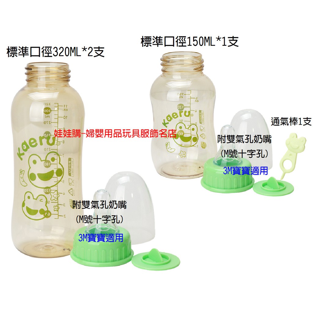 哈皮蛙標準口徑PPSU奶瓶組320ml 2支+150ml1支 K-53041 附M號十字奶嘴 娃娃購 婦嬰用品專賣店