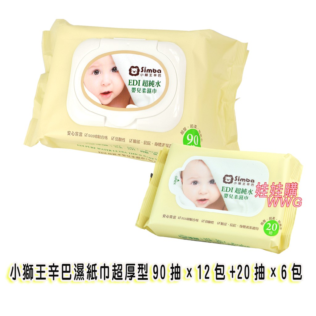 Simba小獅王辛巴EDI超純水嬰兒柔濕巾「小獅王辛巴濕紙巾超厚型90抽x12包+20抽x6包 」娃娃購 婦嬰用品專賣店