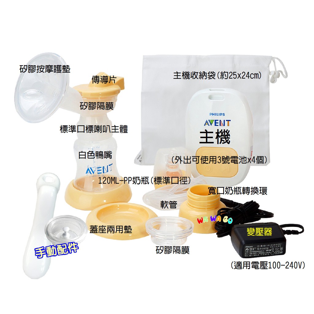 AVENT新安怡標準口徑PP單邊電動吸乳器附手動配件SCF902 娃娃購 婦嬰用品專賣店