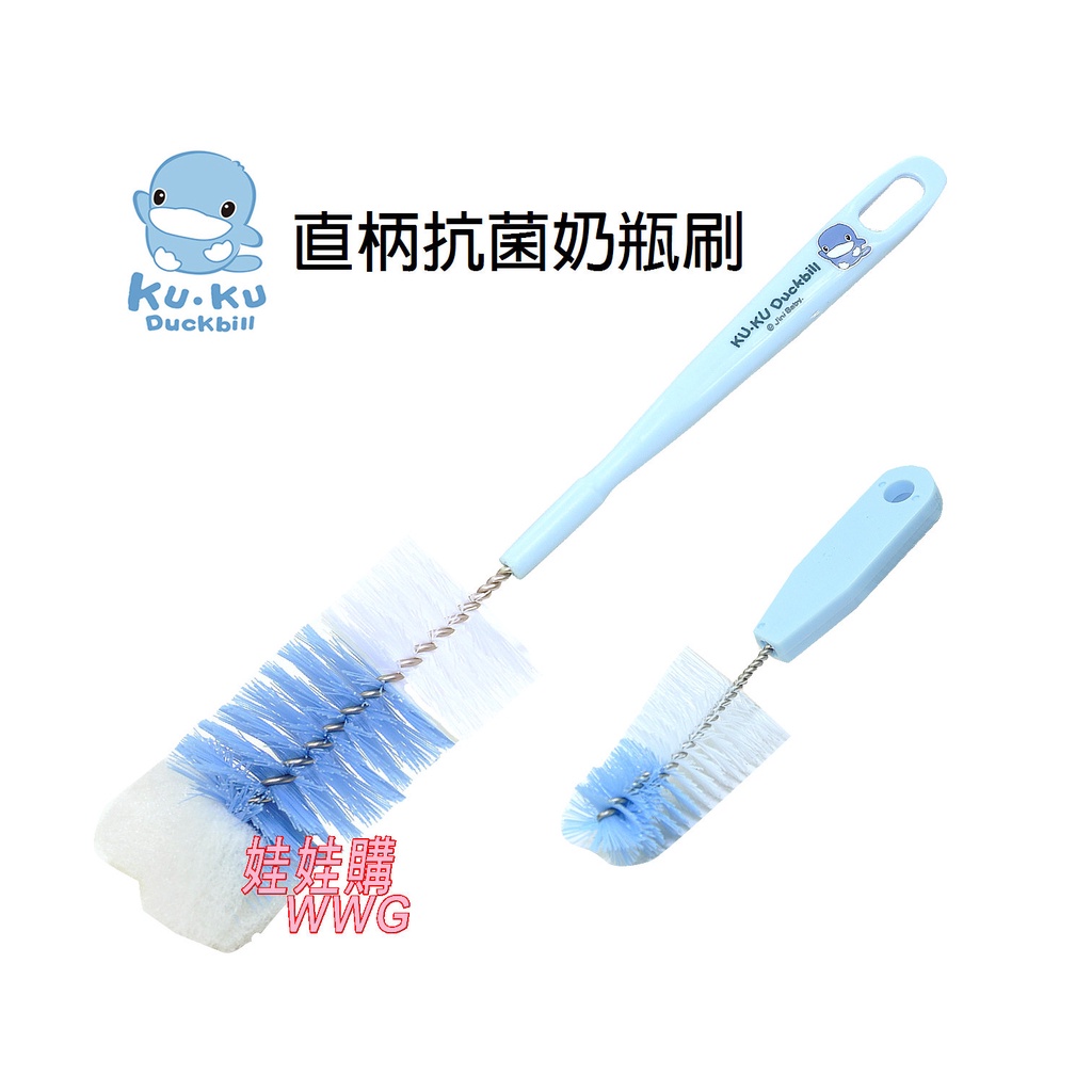 KU.KU 酷咕鴨 直柄奶瓶刷 Ku-5302,刷毛採用杜邦高級尼龍,不銹鋼螺旋棒扣尼龍毛,不生鏽、不脫毛
