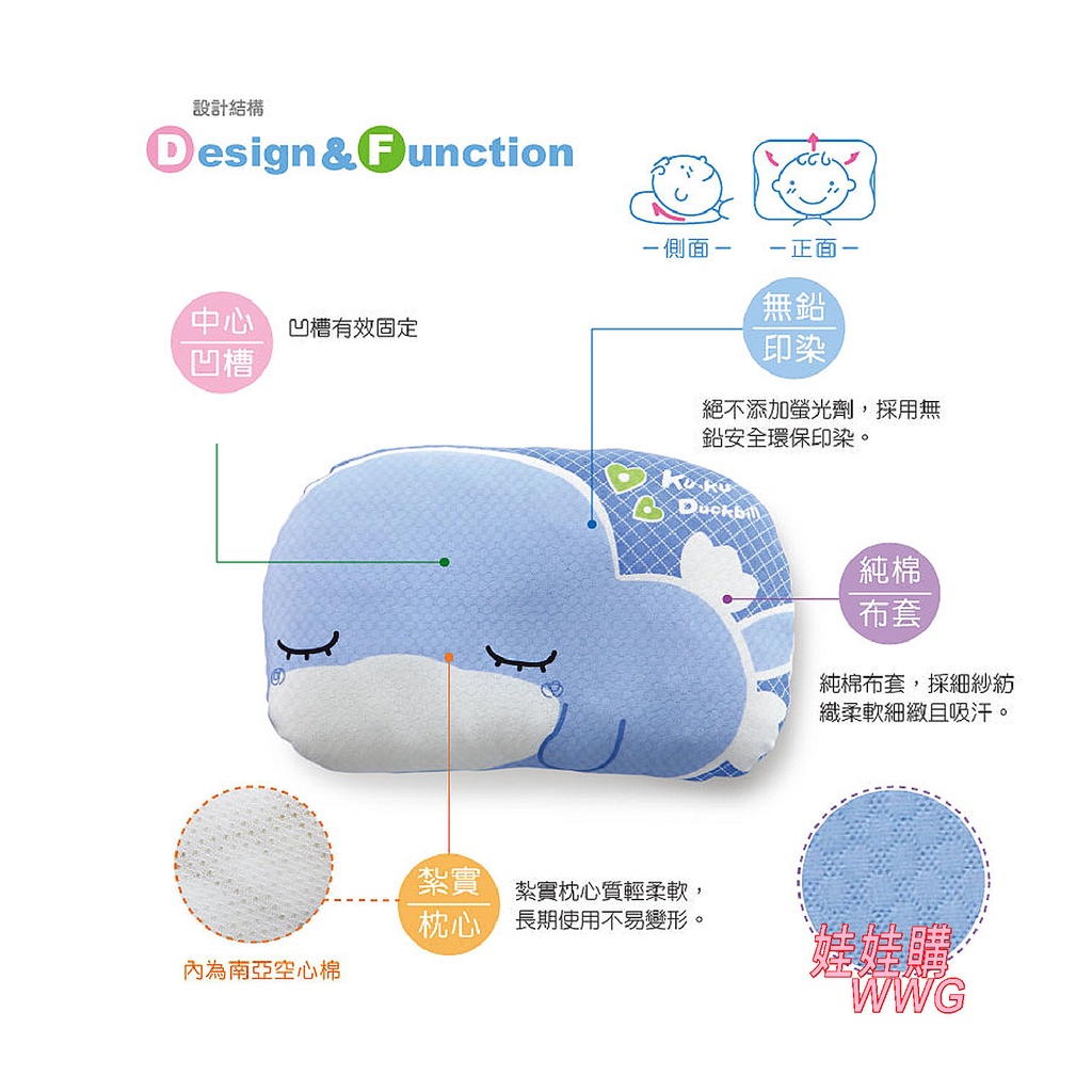 KU.KU 酷咕鴨 舒眠護頭枕,凹槽有效固定,紮實枕心質輕柔軟,長期使用不易變形 娃娃購 婦嬰用品專賣店