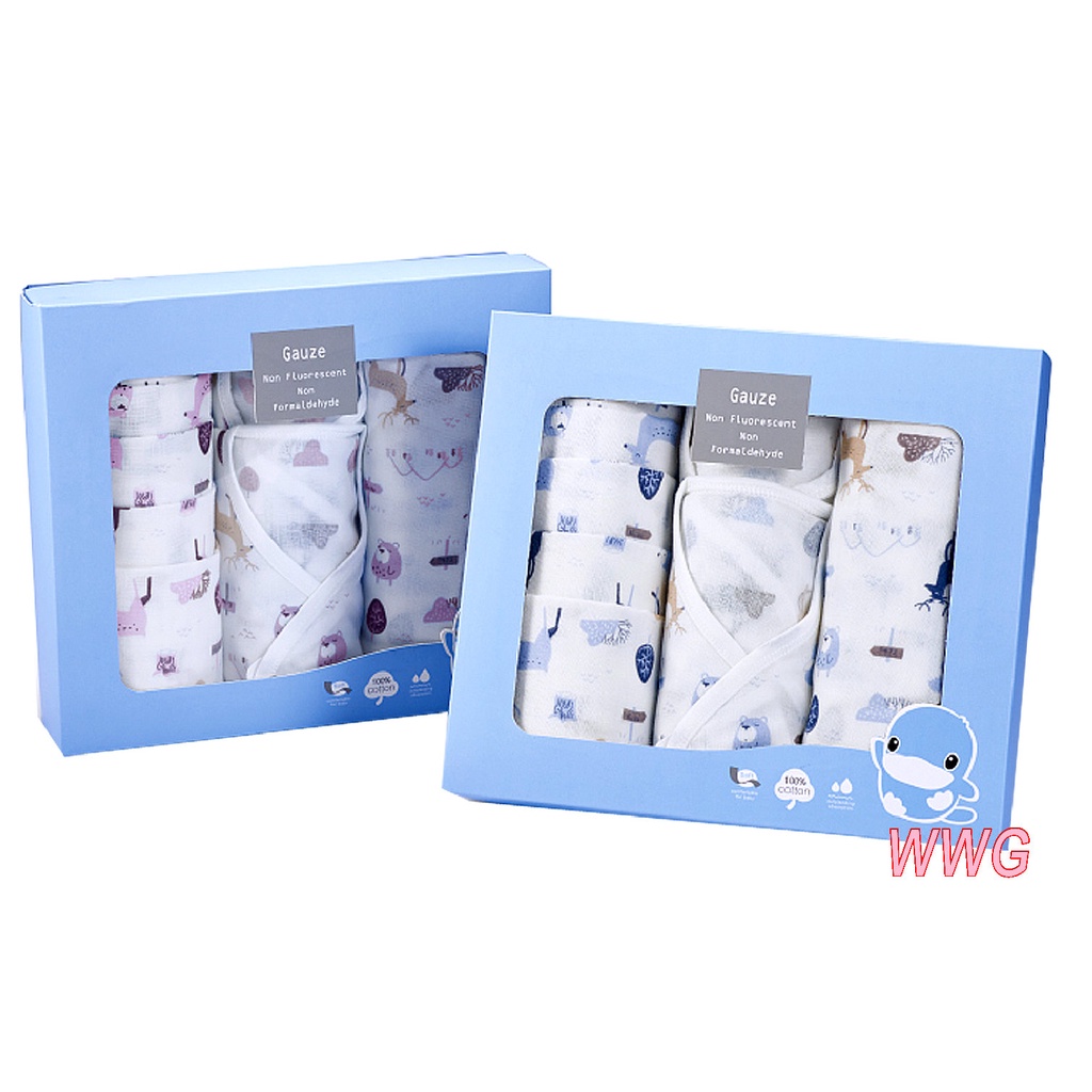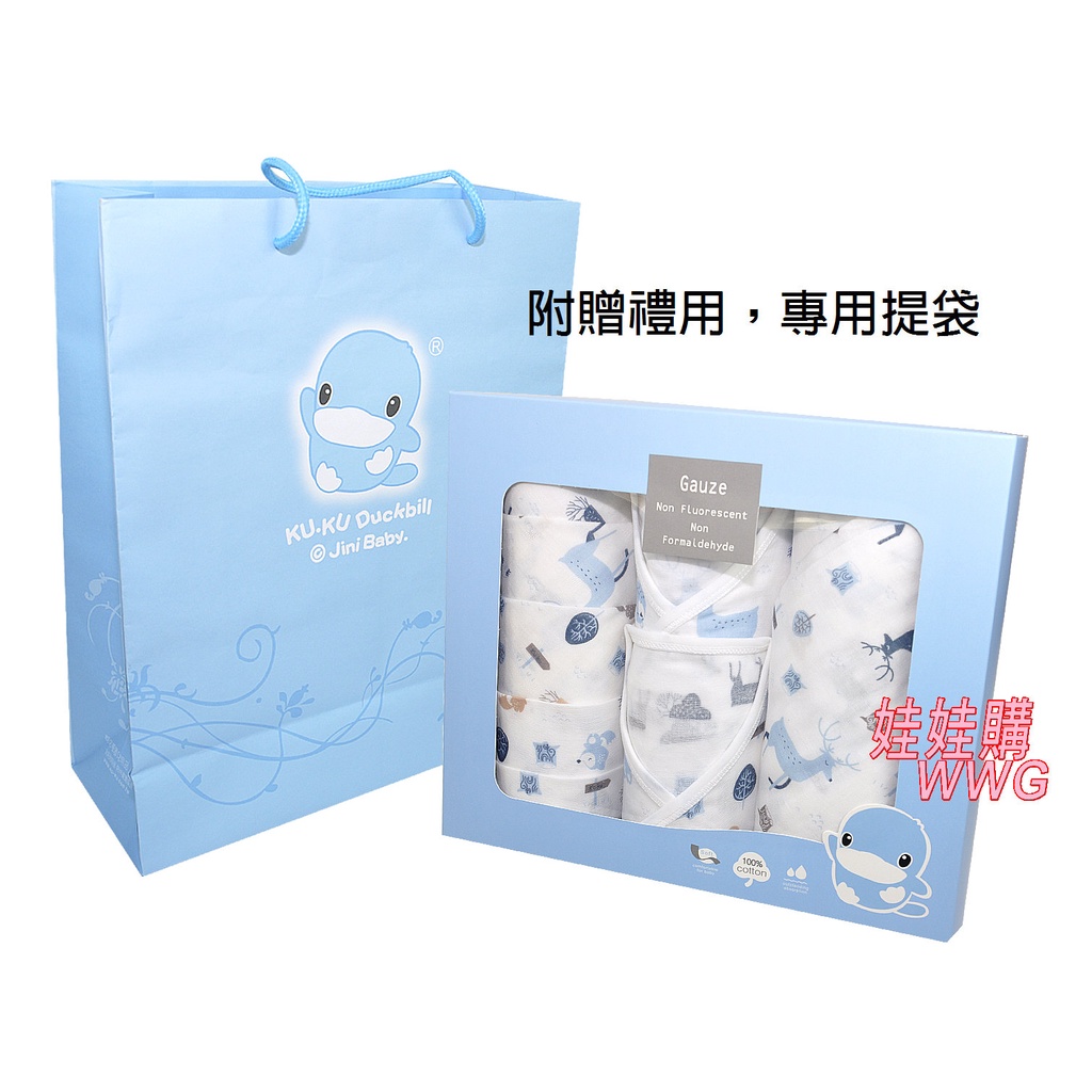 KU.KU 酷咕鴨 北歐迷境森林紗布禮盒8件組,附贈送禮提袋,100%純棉紗布,採用高品質美國棉,送禮自用皆適宜