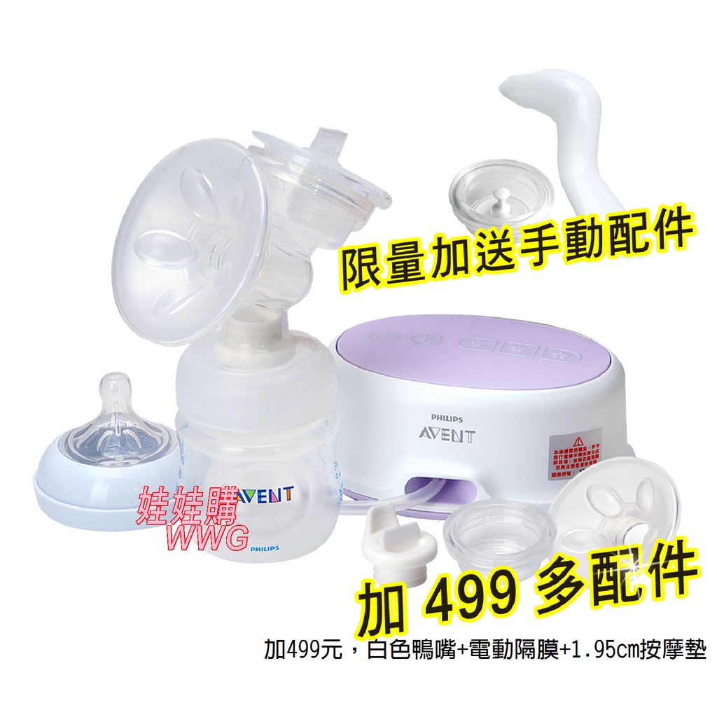 AVENT新安怡輕乳感單邊電動吸乳器SCF332(下殺2099免運)加499元多白色鴨嘴+電動隔膜+1.95cm按摩墊