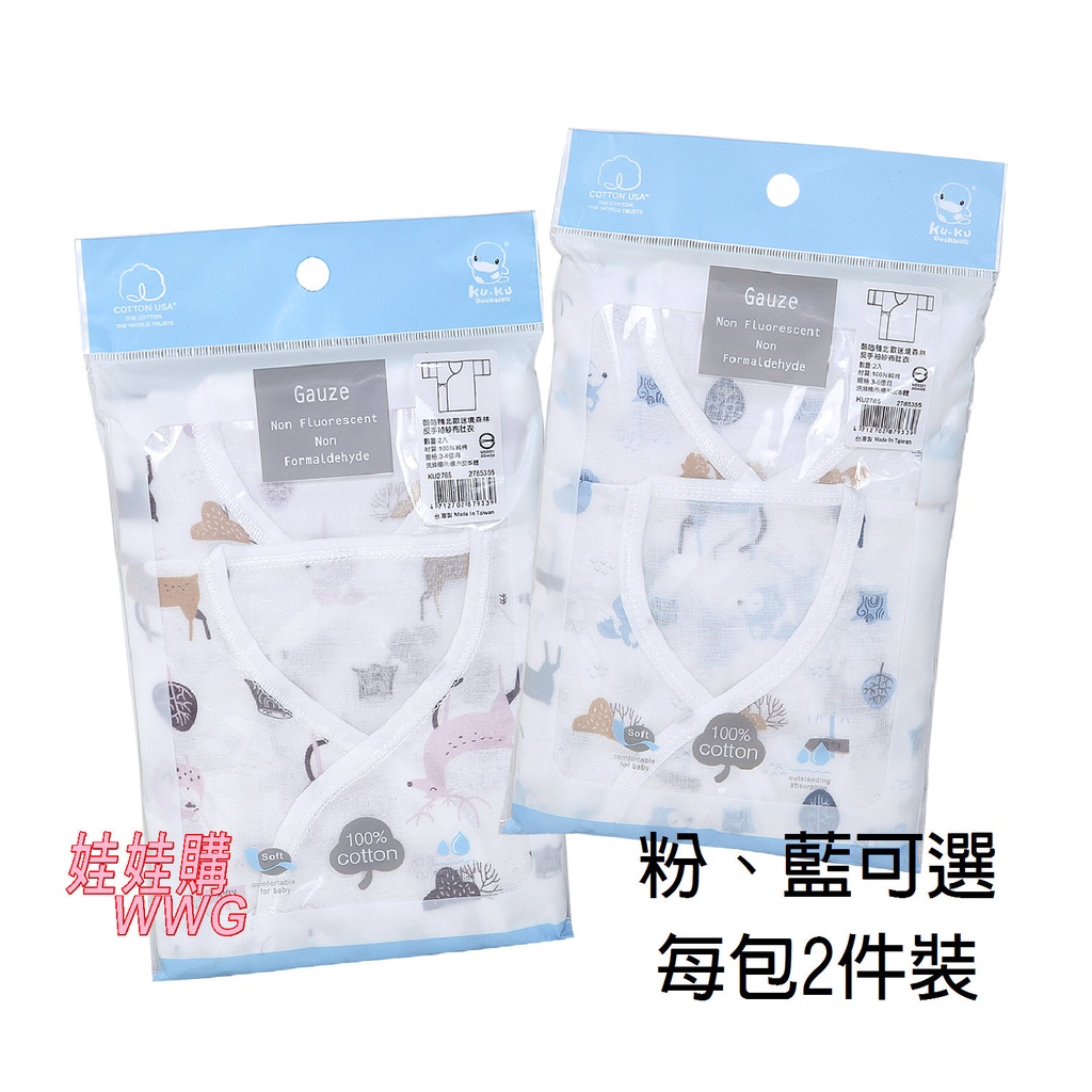 KU.KU 酷咕鴨北歐迷境森林反手袖紗布肚衣出生(2入裝)不含甲醛、螢光劑、無異味,寶寶最親膚、最天然、無負擔的貼身呵護