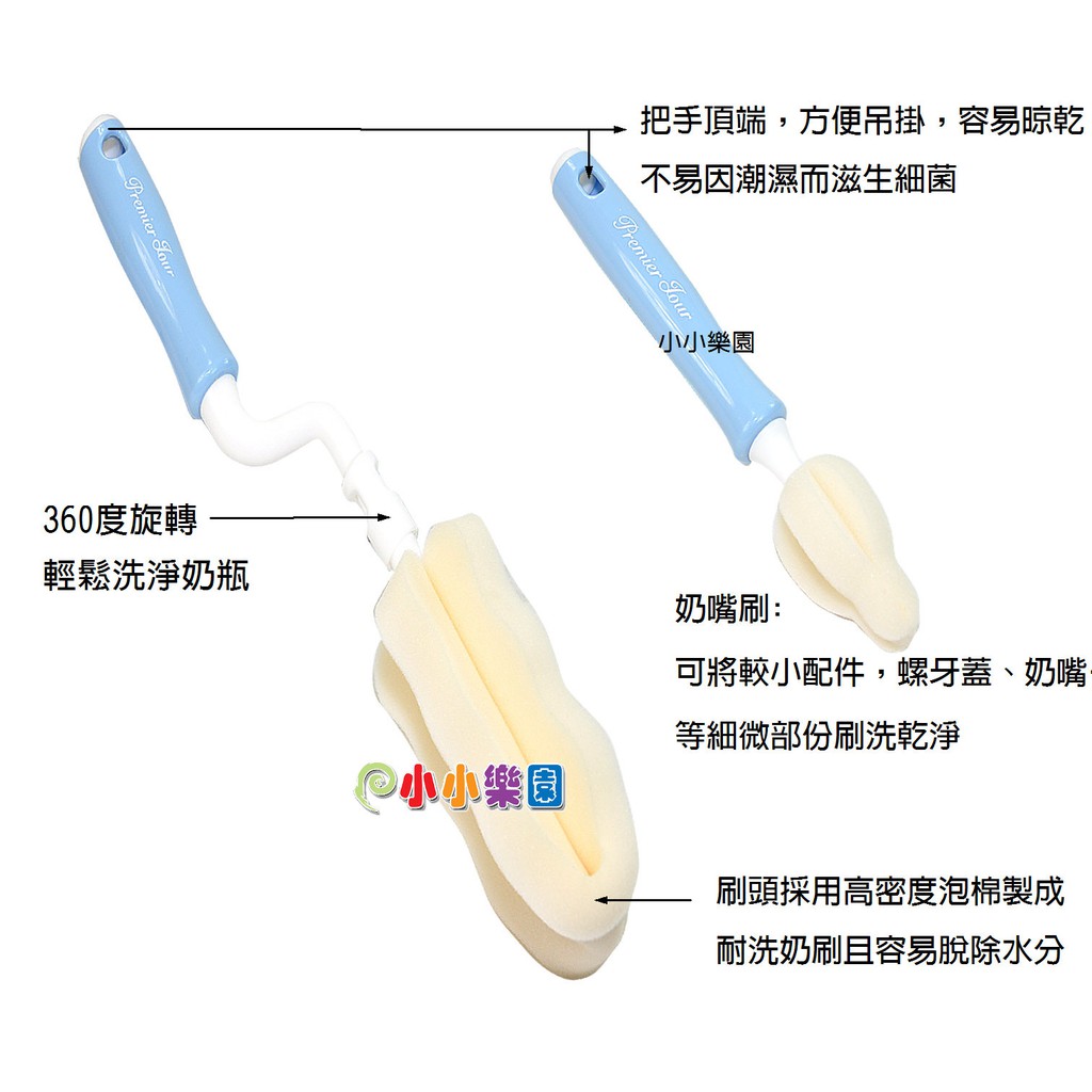 朴蜜兒SUPER泡棉抗菌奶瓶刷組藍色(可360度旋轉)刷頭採用高密度泡棉製成 耐洗奶刷且容易脫除水分