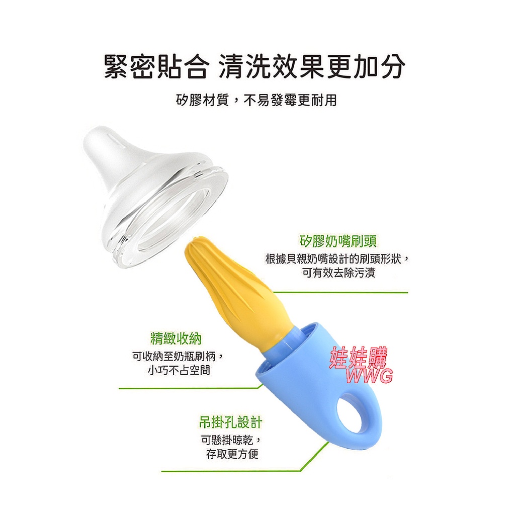 Pigeon 貝親矽膠奶嘴刷P80289,矽膠材質刷頭,不易造成刮痕,刷毛採用矽膠製成,柔軟、耐用,耐熱120度可消毒