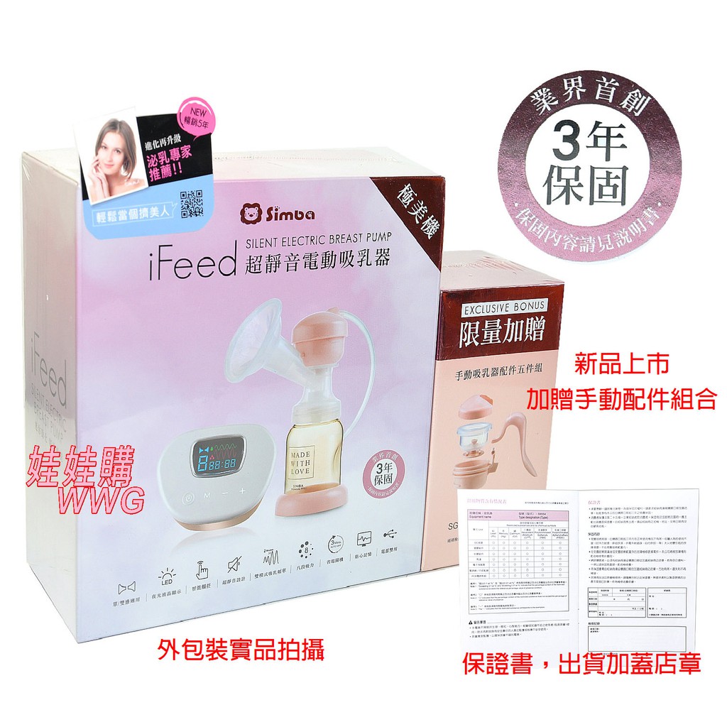 Simba小獅王辛巴iFeed 極美機超靜音電動吸乳器加贈手動配件 馬達超靜音包覆設計原廠保固三年 下殺3300免運