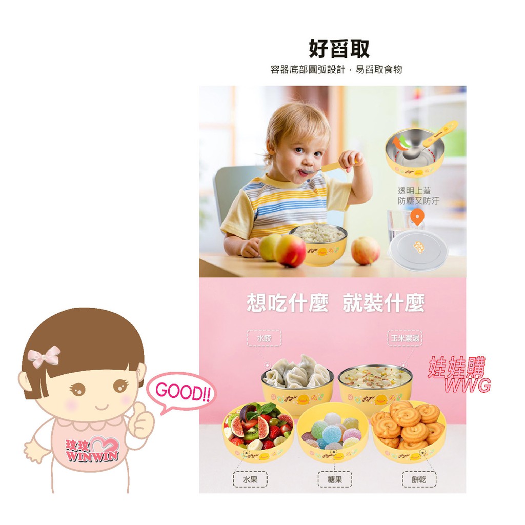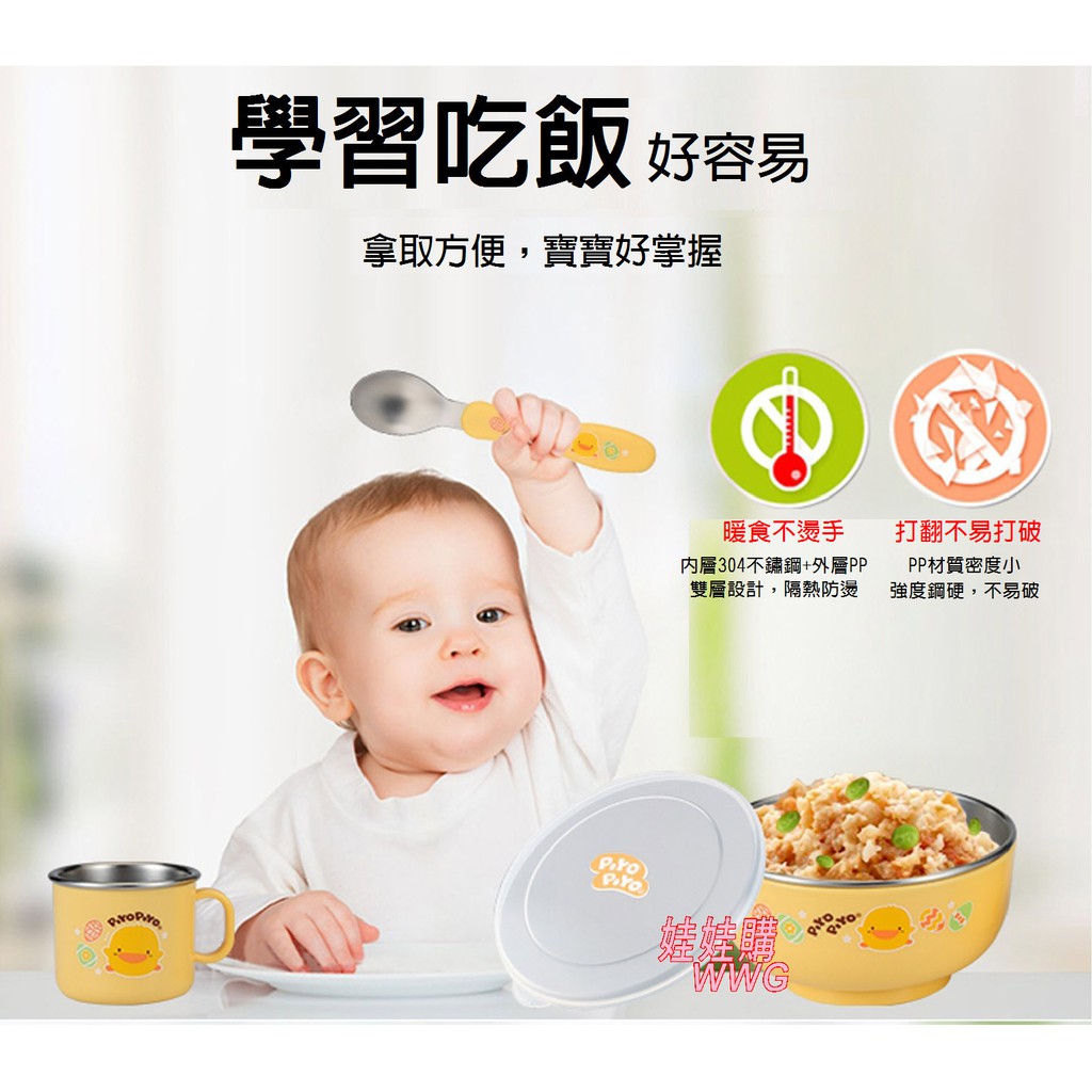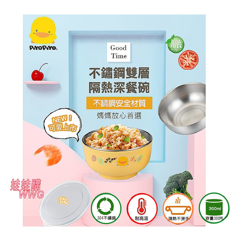 Piyo Piyo 黃色小鴨不鏽鋼雙層隔熱深餐碗300ML 內層USU304不鏽鋼材質 耐高溫 GT-63142