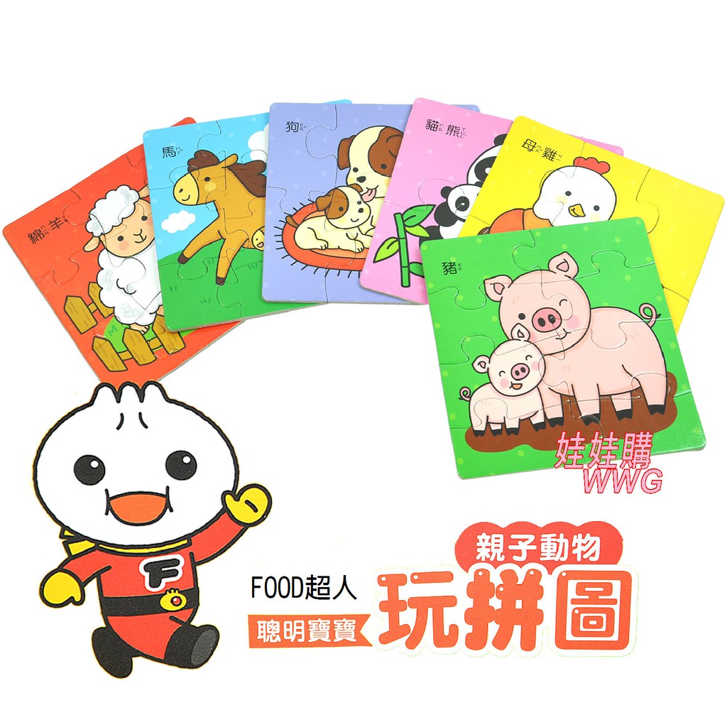 風車圖書FOOD超人 聰明寶寶玩拼圖親子動物 在玩拼圖的過程中同時認識動物 手腦並用樂無窮 娃娃購 婦嬰用品專賣店