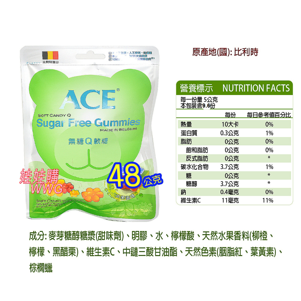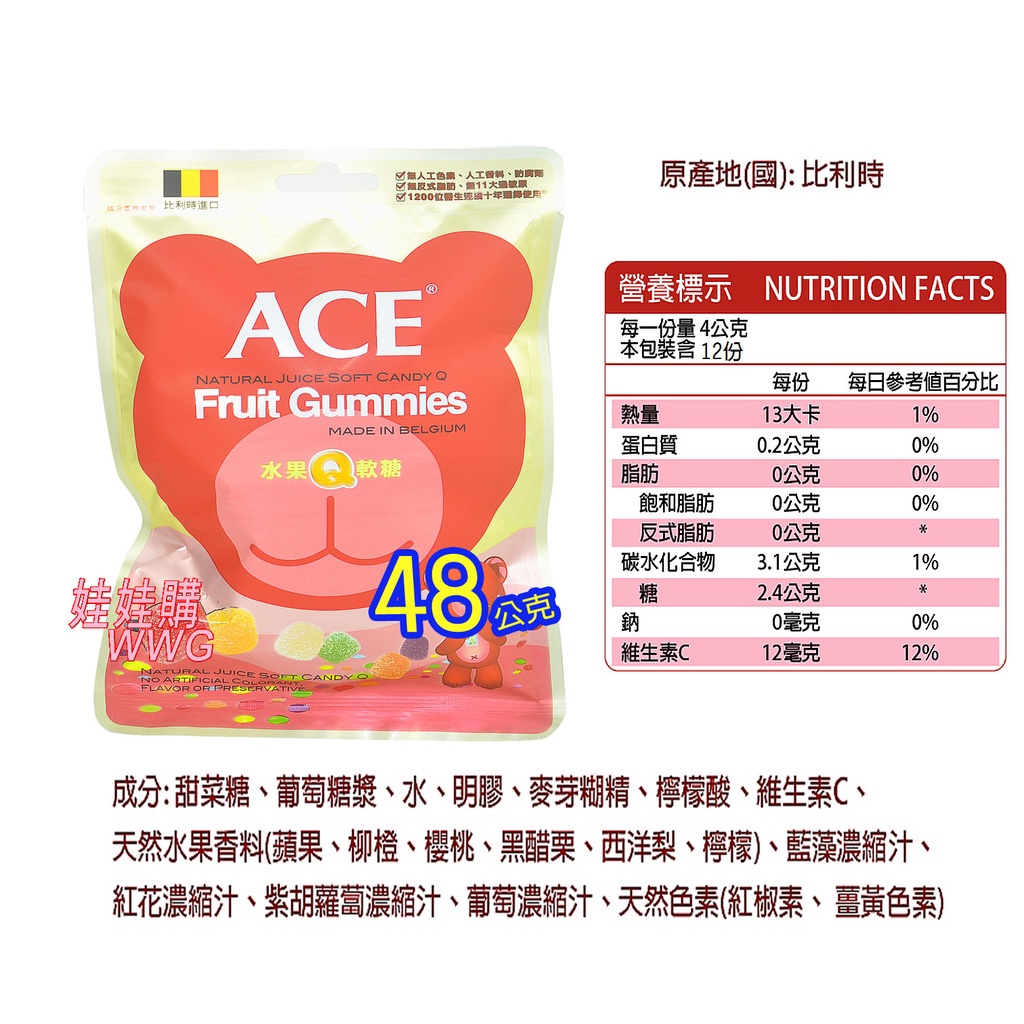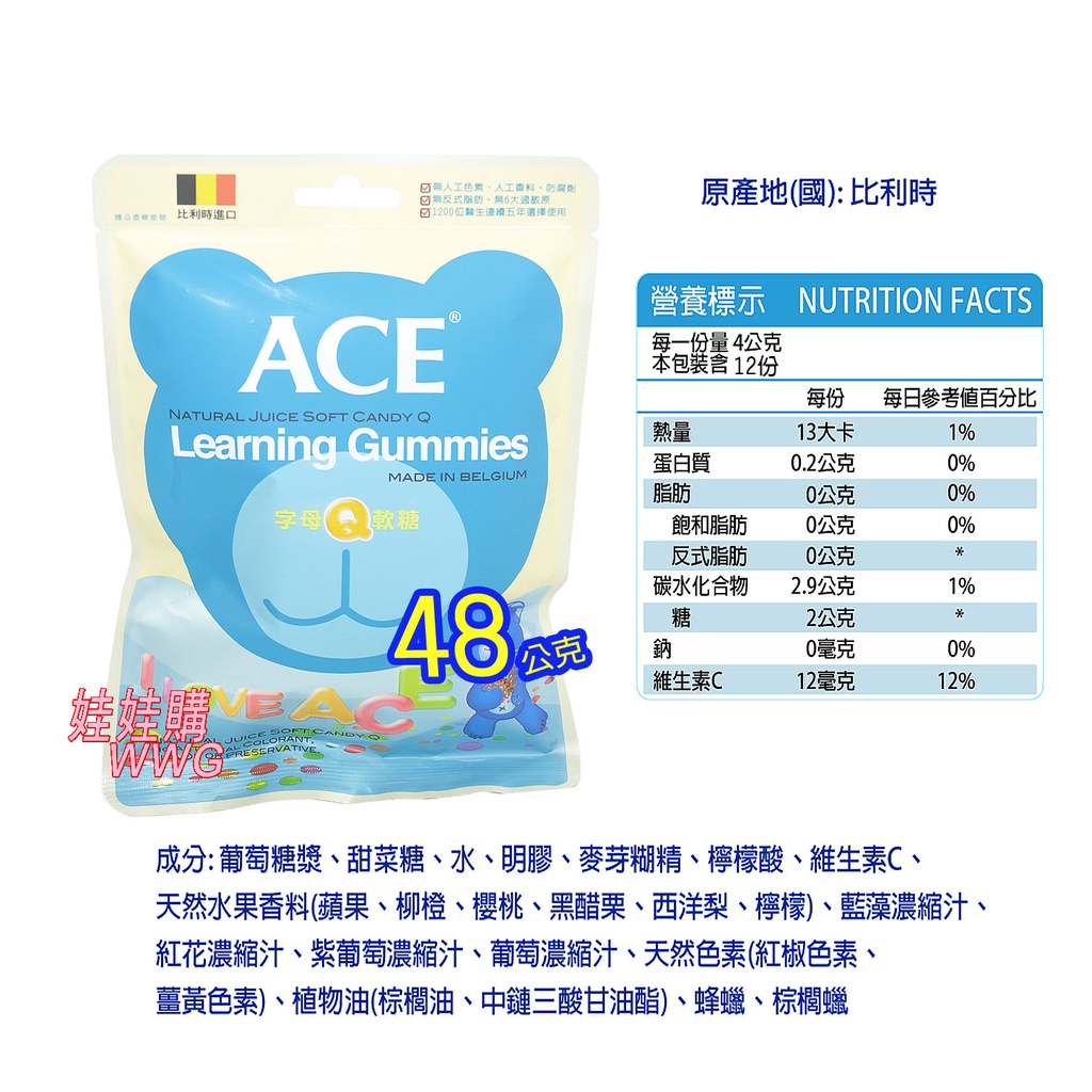 ACE比利時Q軟糖,水果Q軟糖、字母Q軟糖、酸Q軟糖、無糖Q軟糖,1200位醫生推薦,宜果公司貨 娃娃購 婦嬰用品專賣店