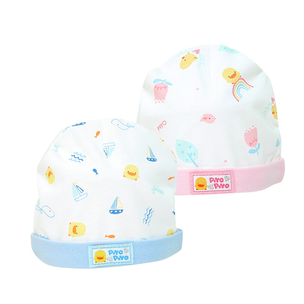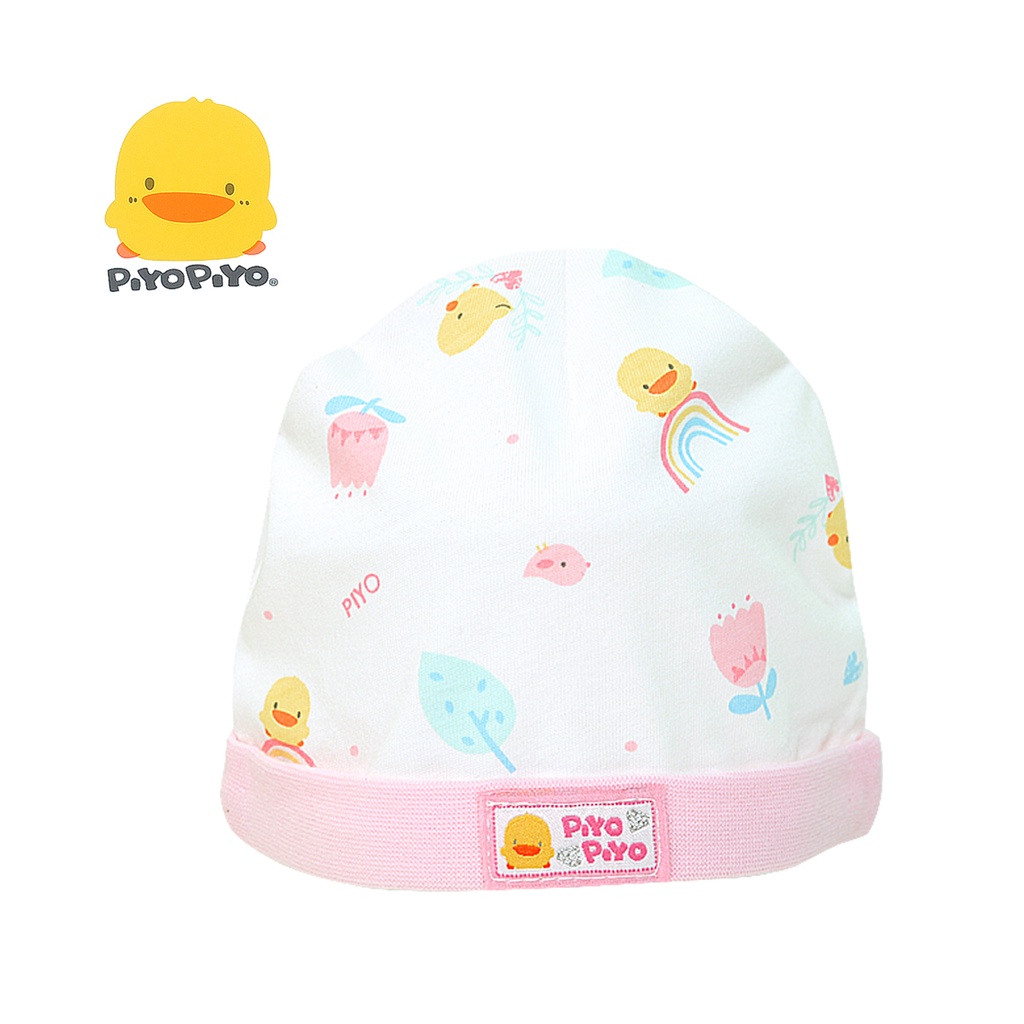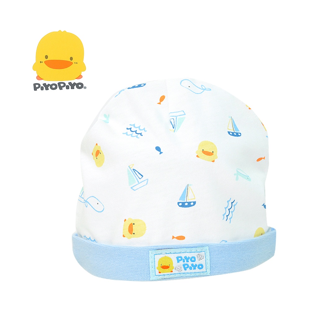 Piyo Piyo黃色小鴨初生半圓帽34cm,新生兒寶寶適用,立體半圓帽版型,彈性包覆佳,好戴不緊勒帽緣