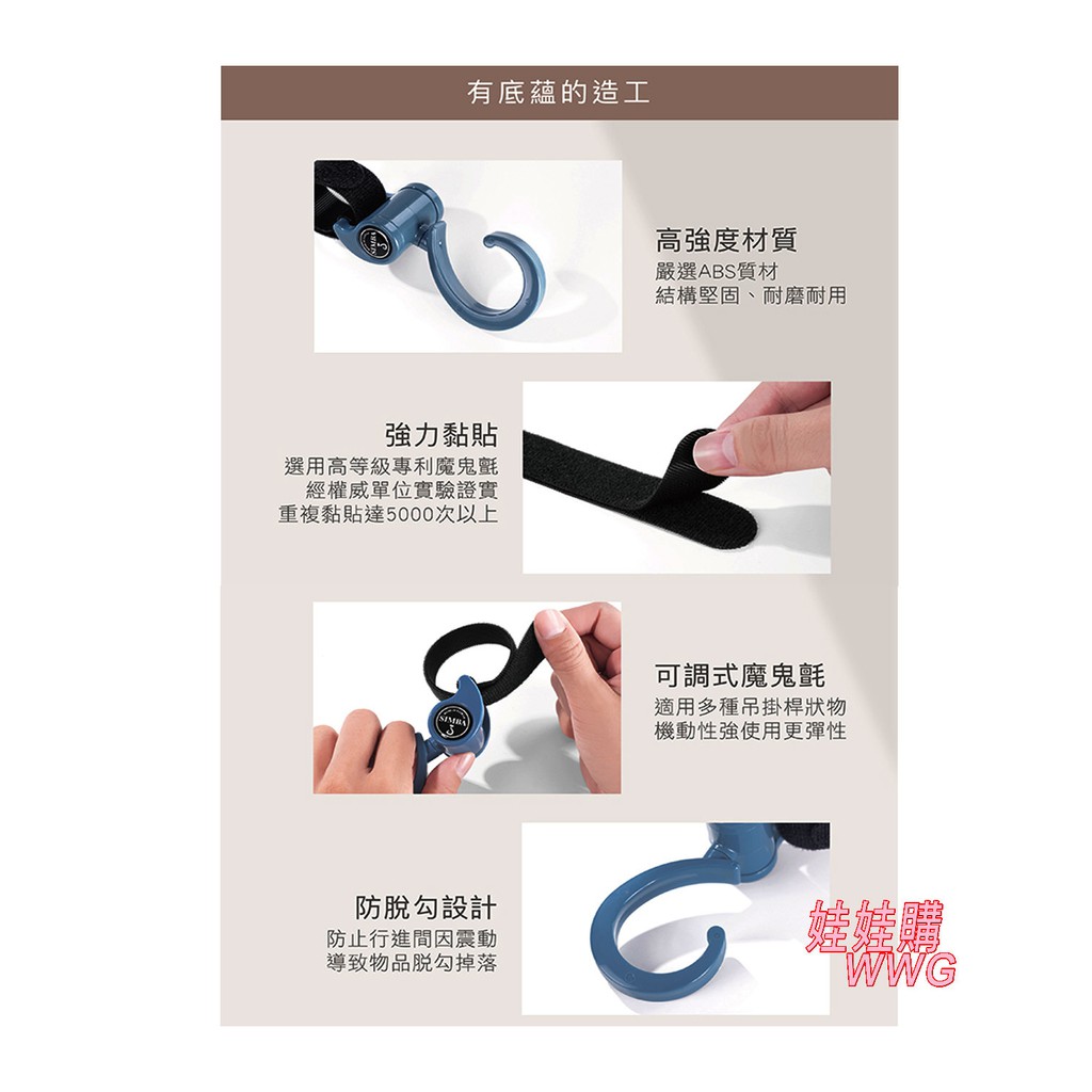 Simba小獅王辛巴多功能旋轉掛勾,可調節魔術帶適用於大多數規格推車,可掛收納袋、媽媽包、玩具等