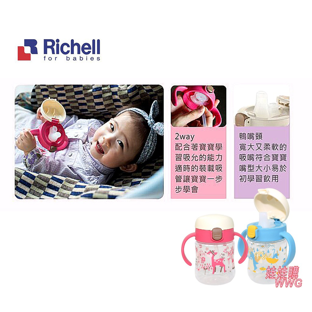 Richell 日本利其爾TLI第二代水杯系列,利其爾花間鹿鴨嘴吸管水杯200ML,利其爾萌答答鴨嘴吸管水杯200ML