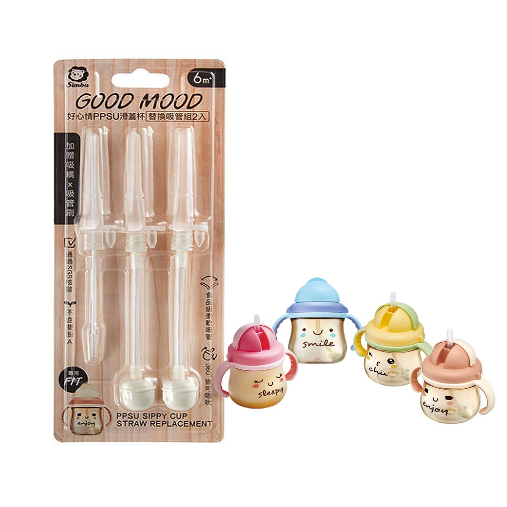 Simba小獅王辛巴好心情PPSU滑蓋杯替換吸管組(2入)S8660附吸管刷,柔軟刷毛深入細小零件,娃娃購婦嬰用品專賣店