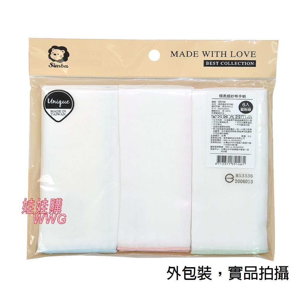 Simba 小獅王辛巴極柔感紗布手帕(6入)不含甲醛、螢光劑,溫和不傷寶寶肌膚S.5146 娃娃購 婦嬰用品專賣店