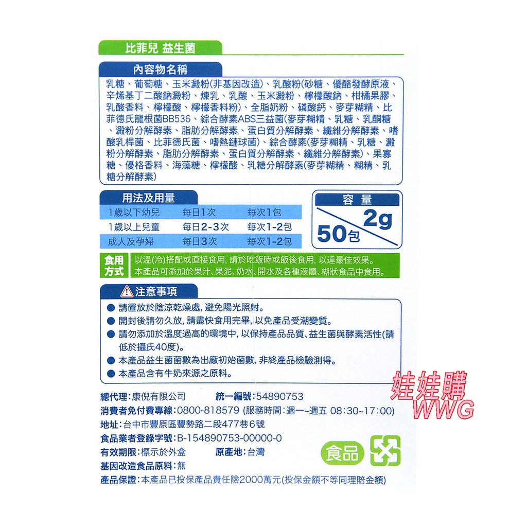 Beehappy比菲兒益生菌2g/50包,特別添加日本森永BB536專利益生菌,幫助消化,調整體質 娃娃購 婦嬰用品專店