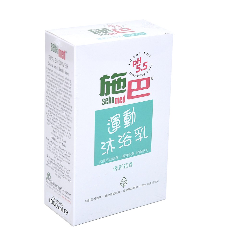 買就送,溫和洗髮乳50ML,sebamed 施巴PH5.5運動沐浴乳 1000ml(清新花香)德國原裝進口,購物有保障