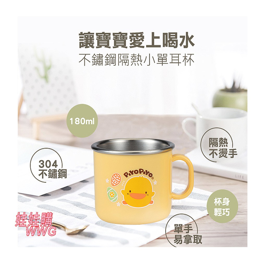Piyo Piyo 黃色小鴨不鏽鋼隔熱單耳杯180ML GT-63139內層SUS 304不鏽鋼材質,耐高溫