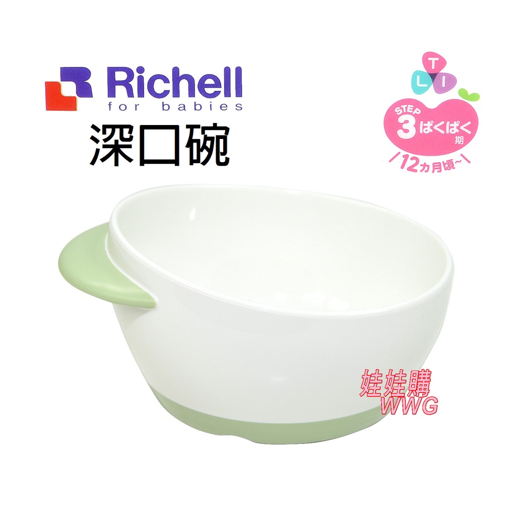 Richell日本利其爾TLI深口碗275ML,第三階段使用餐具,左右兩邊傾斜角度的不同寶寶更容易舀起食物215555