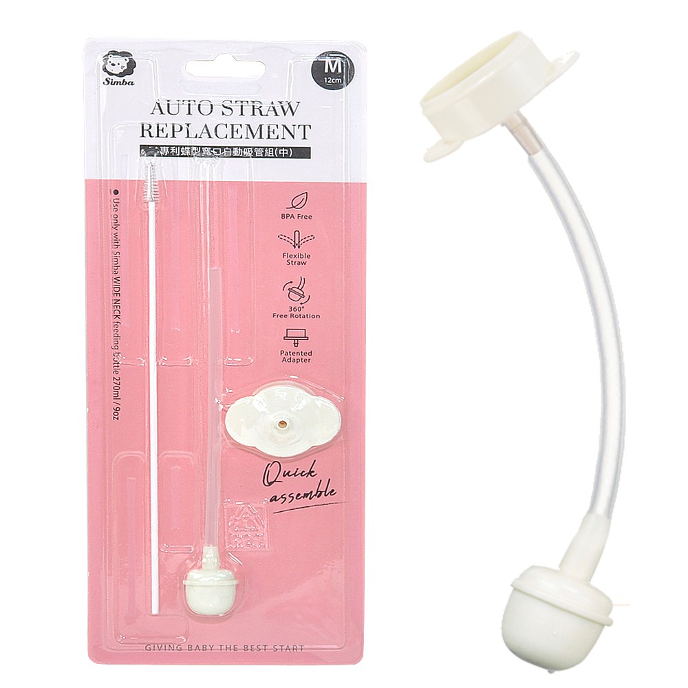 Simba小獅王辛巴專利蝶型寬口自動吸管組S.2128(中)專利碟型吸片,快速組裝(長約12cm)娃娃購 婦嬰用品專賣店