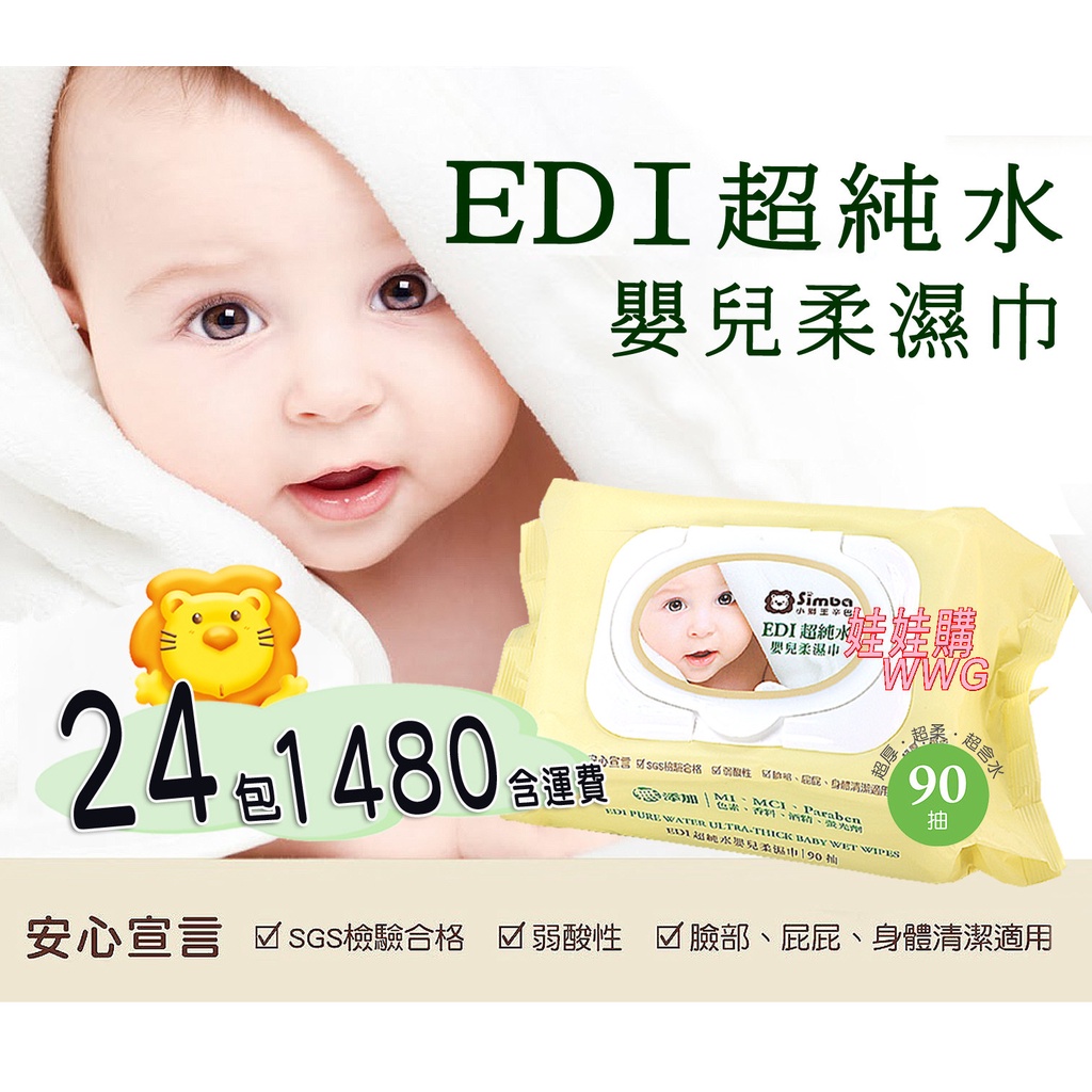 Simba小獅王辛巴EDI超純水嬰兒柔濕巾90抽「小獅王辛巴濕紙巾超厚型90抽x24包」娃娃購 婦嬰用品專賣店
