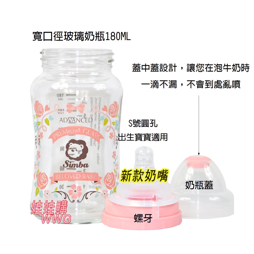 Simba小獅王辛巴蘿蔓晶鑽寬口玻璃小奶瓶 180ML, 娃娃購 婦嬰用品專賣店