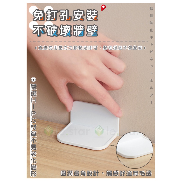 【FaSoLa】免打孔HIPS兒童安全防傾倒櫃子固定器(2入) 公司貨|防倒固定 固定貼 兒童防護 櫃子防倒 官方直營