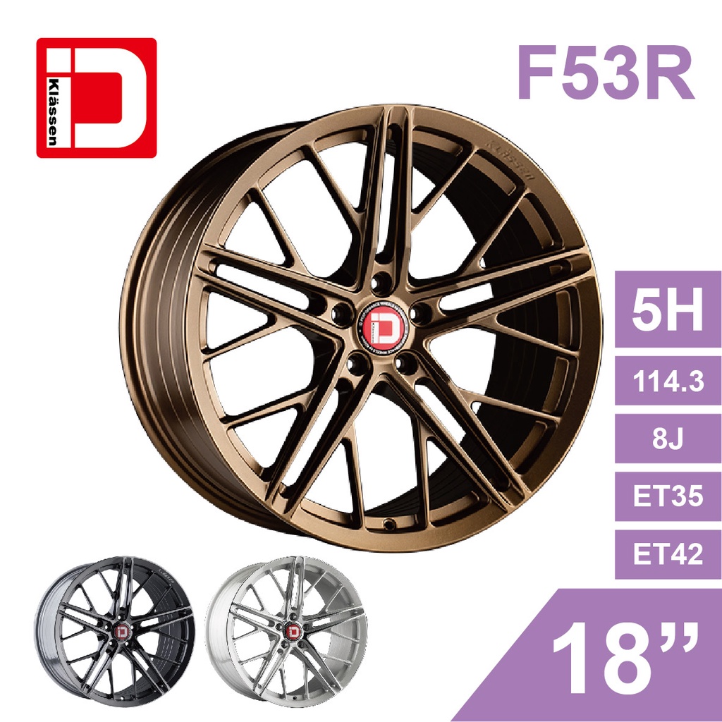 KlasseniD 旋壓鋁圈輪框 F53R 18吋 5孔114.3/8J/ET35/ET42(古銅/灰/銀)【真便宜