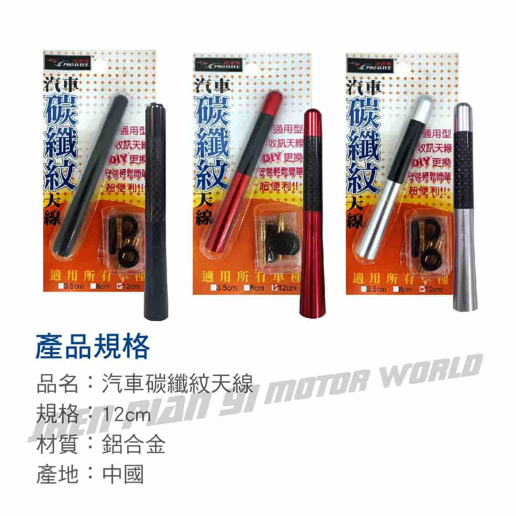 PRODAVE寶達飛 PD-1283 汽車碳纖紋天線12cm(黑/紅/銀)【真便宜】