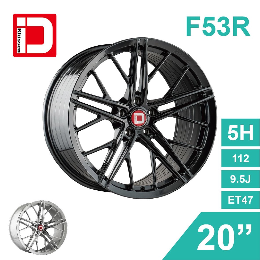 KlasseniD 旋壓鋁圈輪框 F53R 20吋 5孔112/9.5J/ET47(黑/銀)【真便宜】