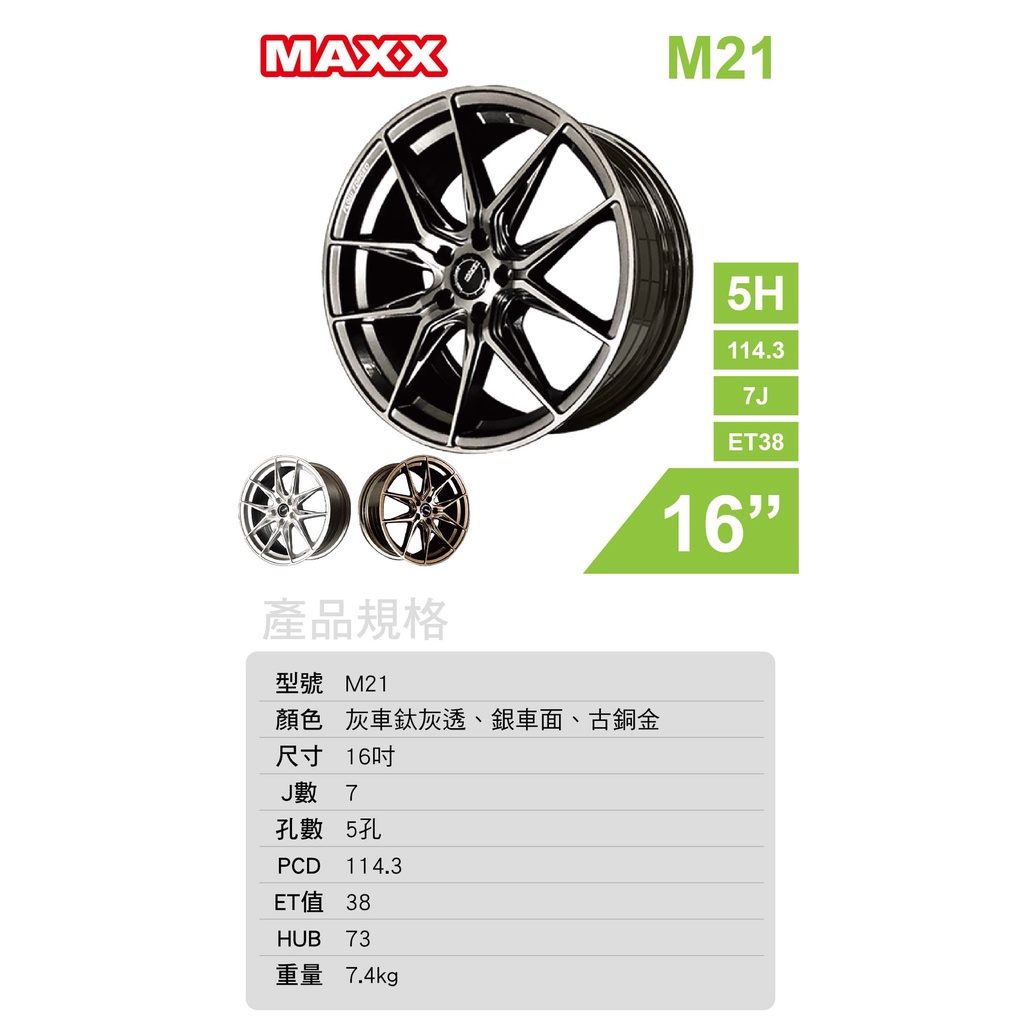 MAXX 旋壓鋁圈輪框 M21 16吋 5孔114.3/7J/ET38(灰/銀/銅)【真便宜】