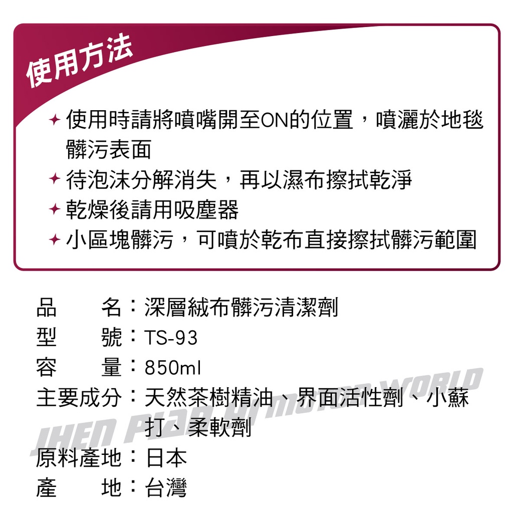 Capro車之生活 TS-93 極銳澤2代 深層絨布髒污清潔劑850ml【真便宜】
