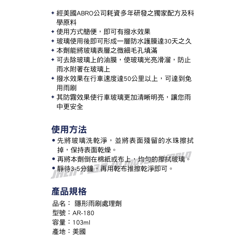 ABRO艾伯樂 AR-180 隱形雨刷處理劑103ml【真便宜】