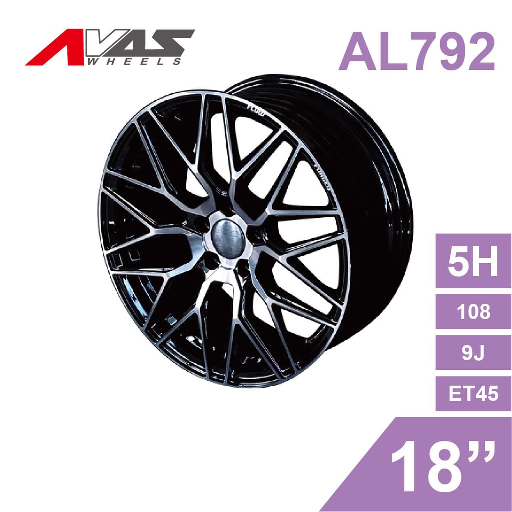 Alliance泓越 AVAS旋壓鋁圈輪框 AL792 18吋 5孔108/9J/ET45(黑底亮面)【真便宜】