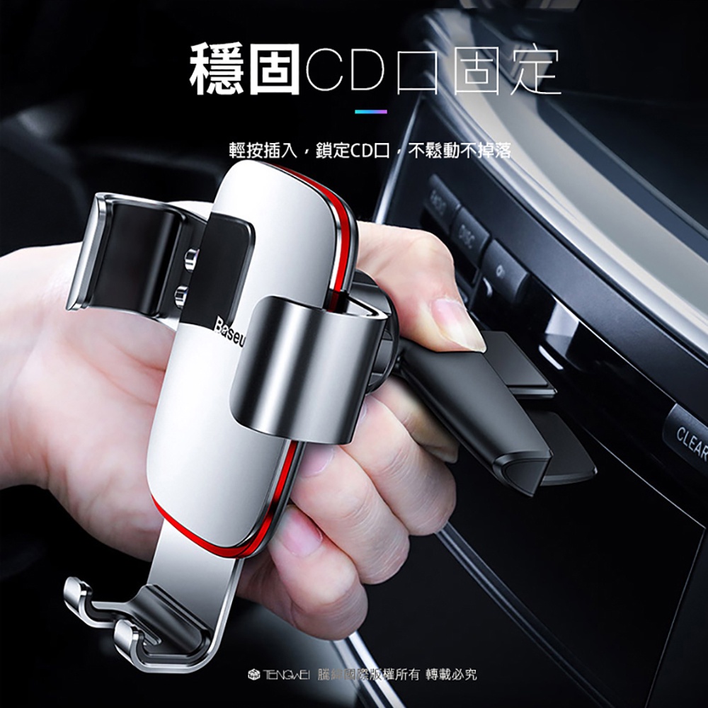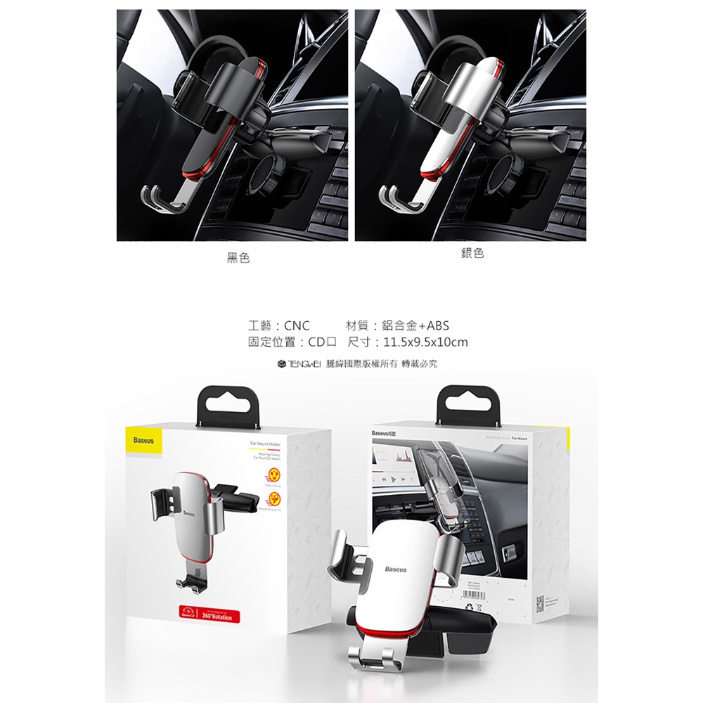 BASEUS倍思 金屬時代CD槽重力手機架(黑/銀)【真便宜】