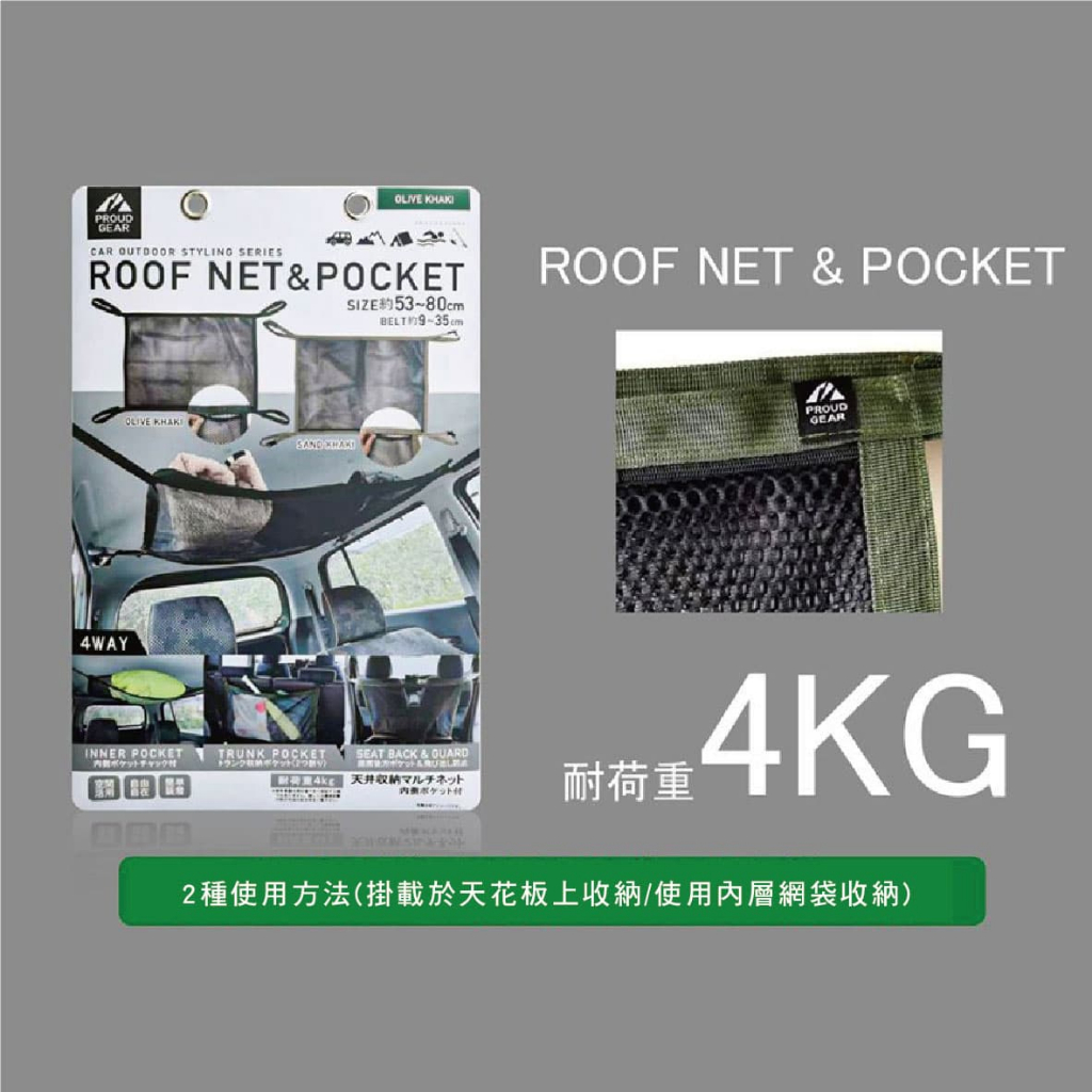 日本DIONE 森活車頂收納網(軍綠/卡其)