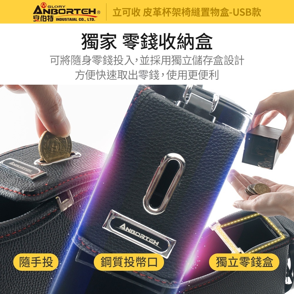 ANBORTEH安伯特 ABT-A089 立可收 皮革杯架椅縫置物盒-USB充電款【真便宜】