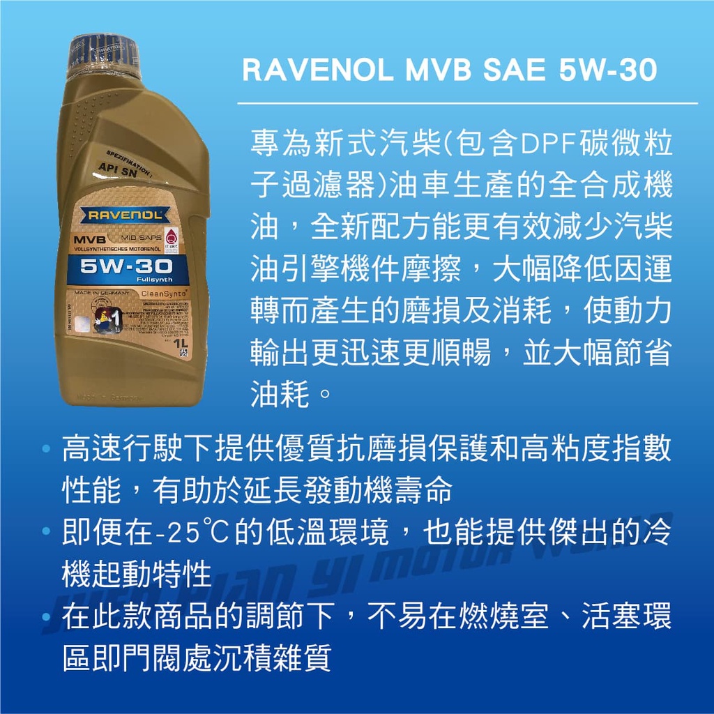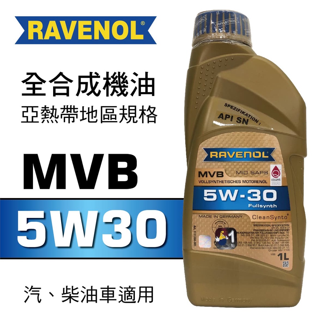 RAVENOL漢諾威 MVB SAE 5W30 全合成長壽機油(亞熱帶地區規格)1L【真便宜】