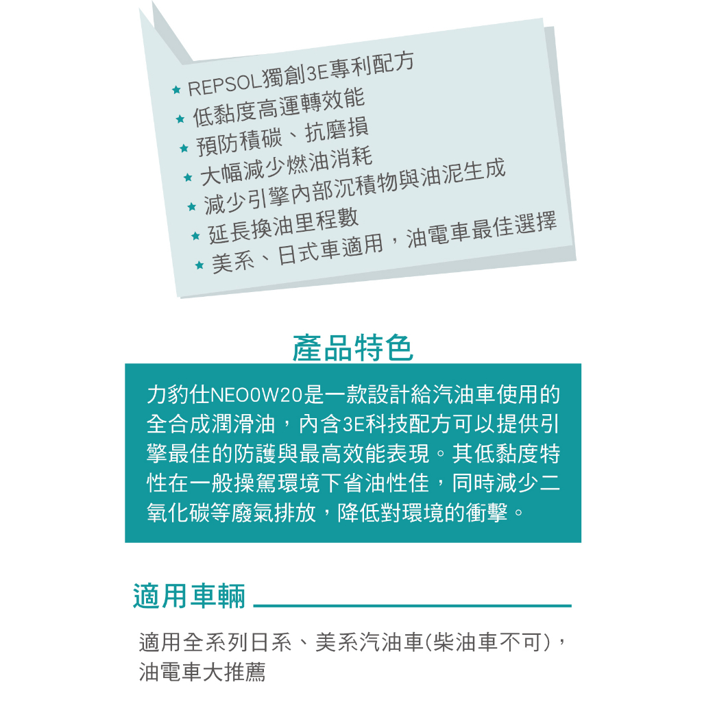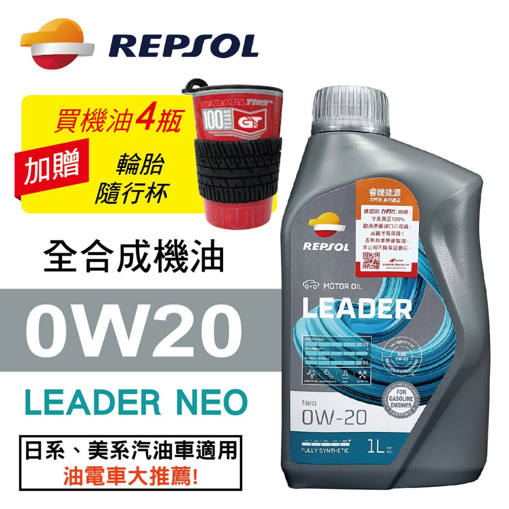 REPSOL力豹仕 LEADER NEO 0W20 超節能全合成機油1L(公司貨/汽油車/油電車)買4瓶贈好禮【真便宜】