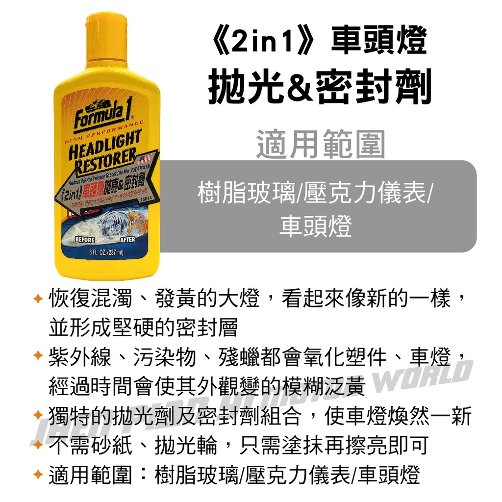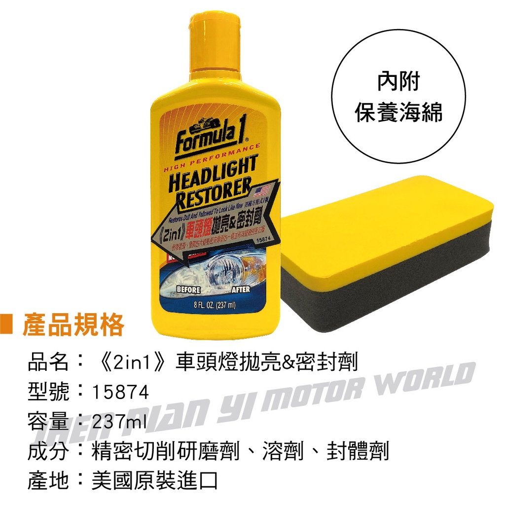 FORMULA1 15874《2in1》車頭燈拋亮&密封劑237ml【真便宜】