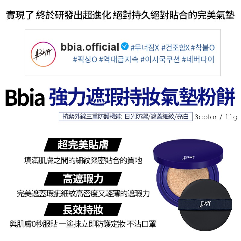 【Bbia 碧娥】最新款 強力遮瑕持妝氣墊粉餅3色 不沾口罩 防護定妝 氣墊粉餅 重複補妝 現貨速寄